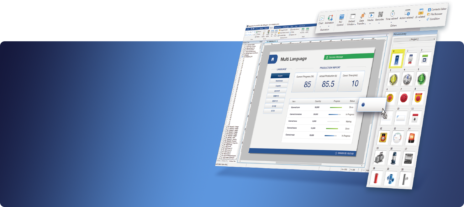 EasyBuilder Pro為Weinview獨家自主開發,專為設計Weinview HMI而生的多功能軟件平臺。無論您是專業人士還是自動化領域的新手,EasyBuilder Pro讓您高效地建置獨一無二的HMI程序。