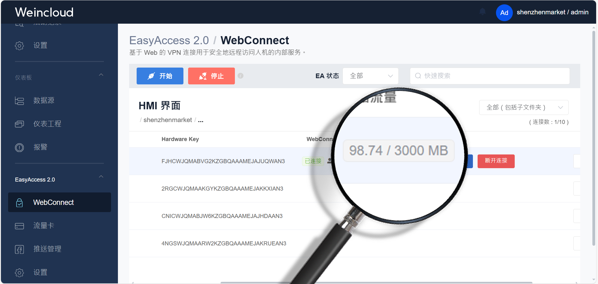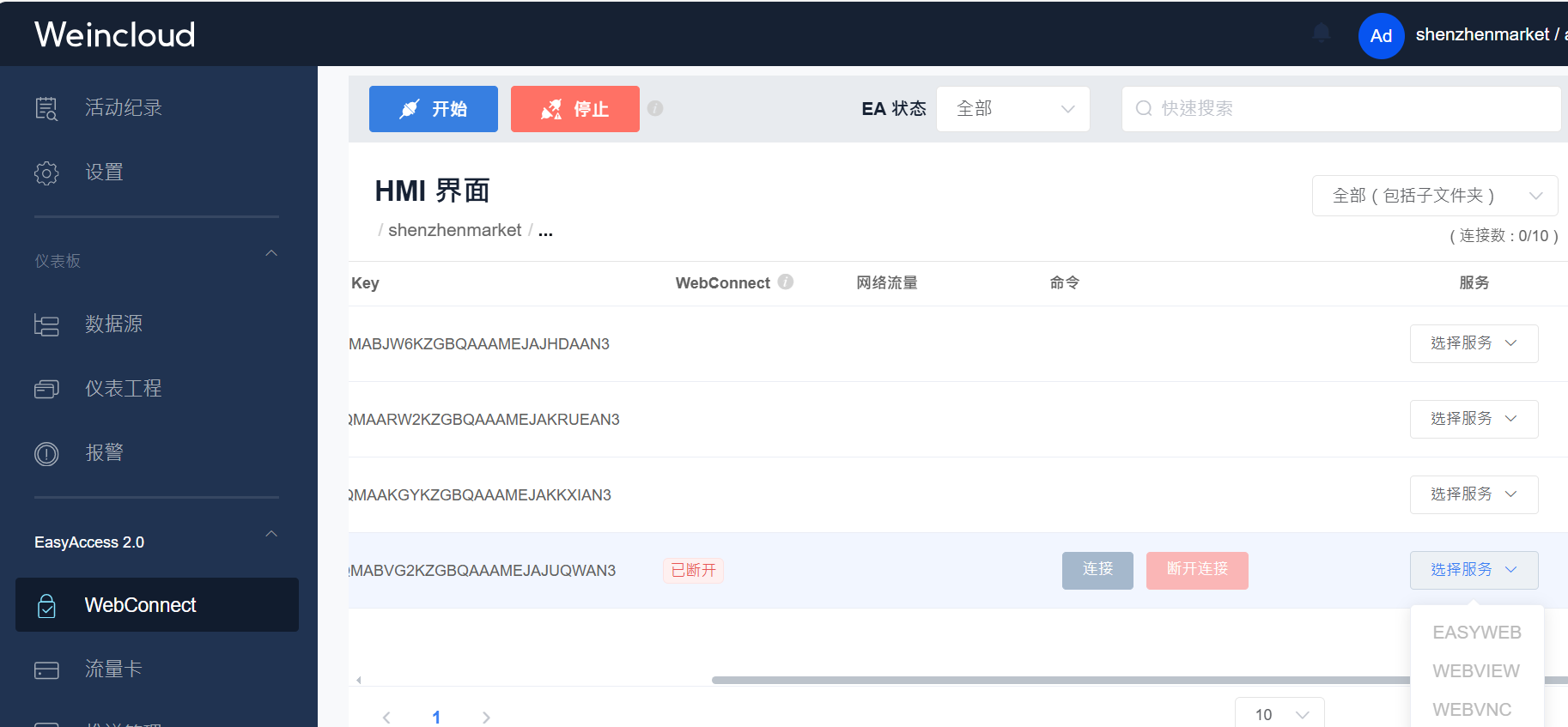免安裝App,Weincloud推出全新網(wǎng)頁版遠程連接服務WebConnect!通過WebConnect,用戶輕松連接EasyWeb、WebView、VNC,或同一域的網(wǎng)頁服務,隨時查看并修改HMI的各項設置。