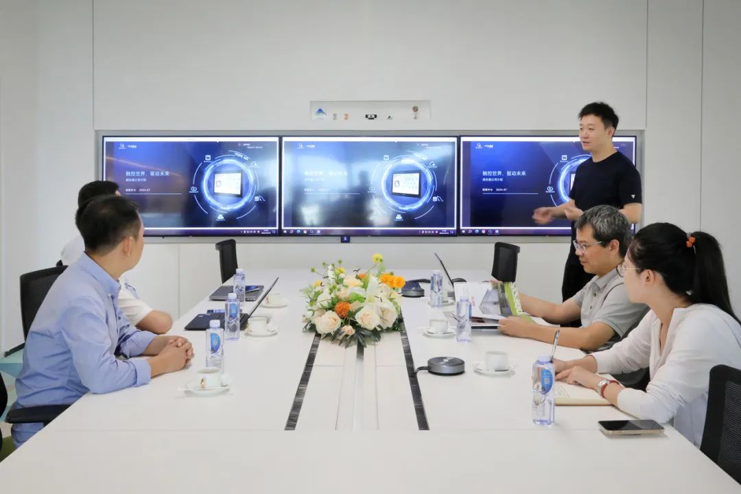 參觀過程中,劉成林向來訪領導介紹了威綸通企業發展歷程以及新一代cMT X系列云端監控HMI產品,通過現場演示與互動體驗,展示威綸通完全運用自主控制系統(HMI+I/O)結合CODESYS軟PLC方案實現的對現場能源管理、照明、空調、窗簾、電源、音響等設備進行管理的自動化智能辦公系統。讓HMI與CODESYS相結合的優勢展露無余。CODESYS(歐德神思)對威綸通的創新能力和研發實力給予了高度的認可。