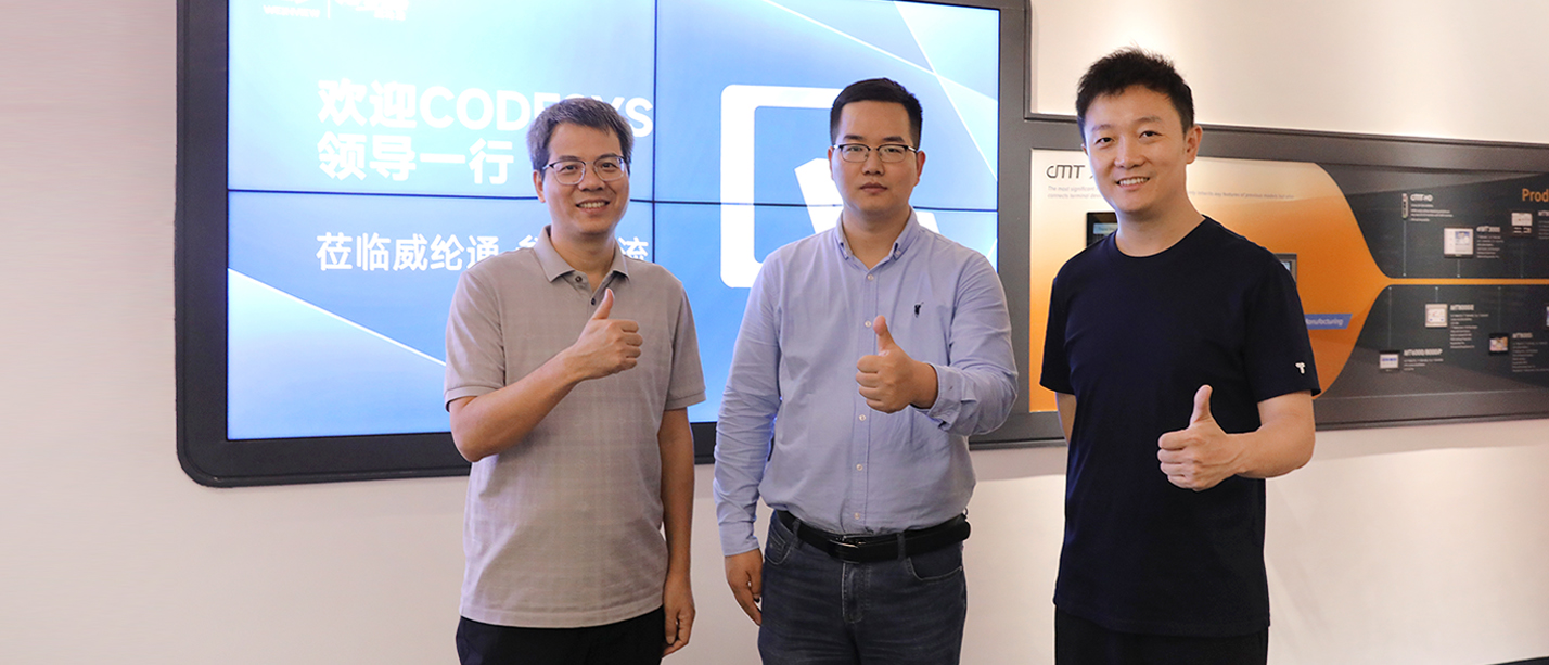 當地時間10月16日,CODESYS(歐德神思)軟件集團市場總監/總裁助理王志強先生、銷售執行總監劉廣闊先生等一行到訪威綸通參觀交流,威綸通市場負責人劉成林、技術總監雷懷明等人出席接待。雙方圍繞就威綸通與CODESYS從產品技術、行業應用及市場合作展開交流。